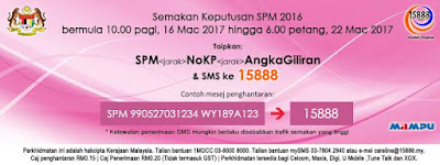 SPM (ruang) Nombor Kad Pengenalan (ruang) Nombor Angka Giliran dan hantar ke 15888